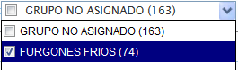 Al momento de desplegar el combo obtendremos todos los nombres de los grupos que existen con la cantidad de vehículos que tiene el grupo.
