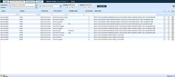 en la cual podemos consultar alertas generadas en un periodo de horas
