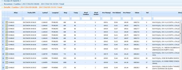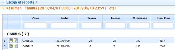Resumen – CanBus si damos click sobre el siguiente icono del reporte