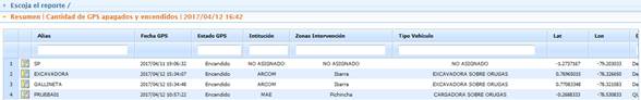 Cantidad de GPS apagados y encendidos consta con la siguiente información: