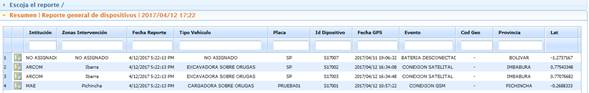 Zonas Intervención, Fecha Reporte, Tipo Vehículo, Placa, Id Dispositivos, Fecha
