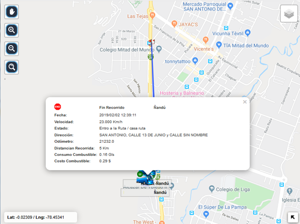 el recorrido que realizado la unidad ese día además tenemos un popup al momento