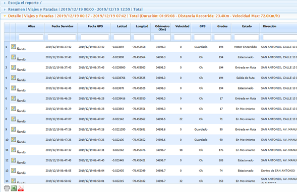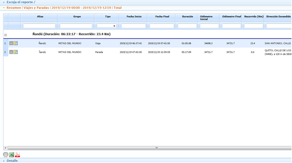 Resumen – Viajes y Paradas si damos click sobre el siguiente icono del reporte