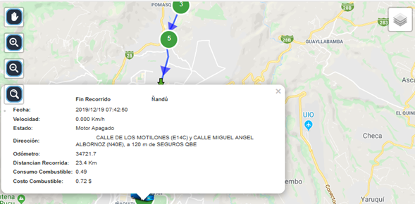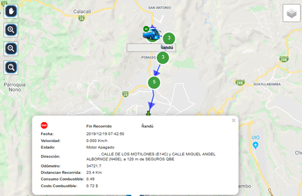 el viaje o las parada, además tenemos un popup al momento de dar click sobre