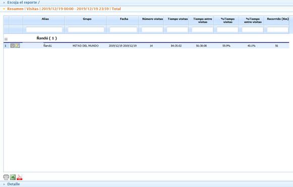 nos desplegara un reporte de detalle de ese