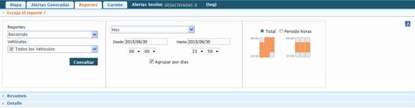 esta opción vamos a poder obtener el Reporte de Recorrido, Paradas,