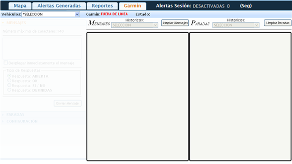 Debemos seleccionar un vehículo de la lista , una vez establecida la conexión con el dispositivo se habilitaran todas las opciones del Garmin.