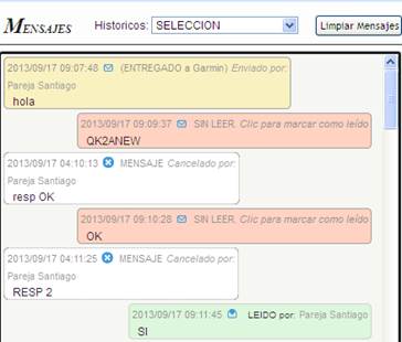 En la parte superior de la pantalla de mensajes tenemos la opción de Históricos en la cual podemos observar los mensajes de los últimos: 7 días, 3 días, 2 días, Ayer y Hoy