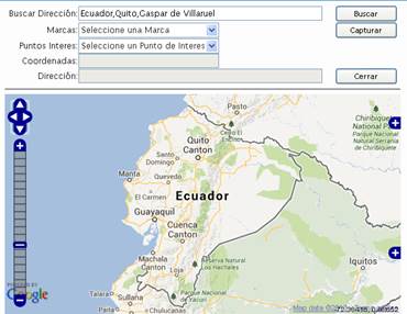Esta opción me permite obtener las Coordenadas y la dirección de destino, para poder buscar la dirección debemos ingresar el País, Cuidad, y Calle principal todo esto separado por una coma, una vez que ya ingresamos la dirección a buscar damos click en el botón Buscar y nos desplegara las coordenadas y la dirección y en el mapa podremos observar nuestro destino.