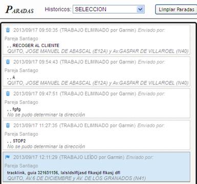 En la parte superior de la pantalla de Paradas tenemos la opción de Históricos en la cual podemos observar las paradas de los últimos: 7 días, 3 días, 2 días, Ayer y Hoy