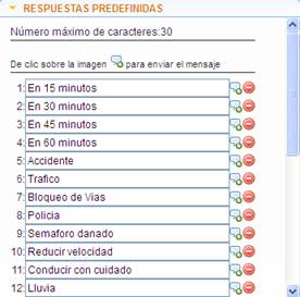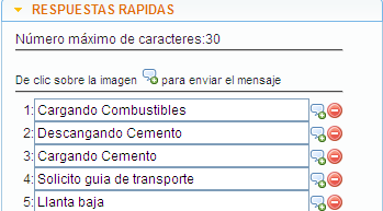 En esta opción me permite ingresar 10 respuestas en el menú del dispositivo GARMIN, cada respuesta rápida puede tener un máximo de 30 caracteres.