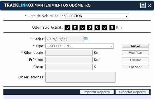 - Click en la opción Mantenimiento Odómetro.