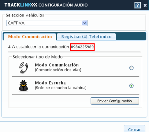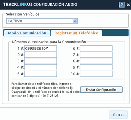 o Debemos seleccionar un vehículo al momento de seleccionar el vehículo me desplegar el número con el que se establecerá la comunicación como podemos ver en la siguiente imagen el número se encuentra en un recuadro rojo.