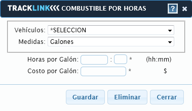 Esta opción permite configurar y eliminar el combustible por horas.