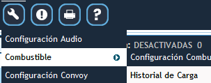 En la barra de menú se debe seleccionar el ítem Configuración / Combustible / Historial de Carga Combustible.