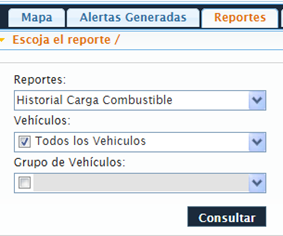 En la sección de reportes rápidos se añadió el reporte Historial Carga de Combustible en el cual se desplegara la información del rango de fecha seleccionado,