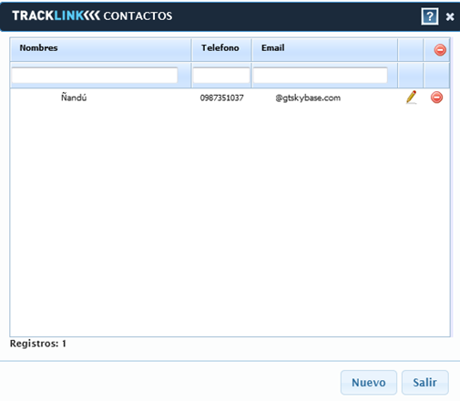 Datos/Contactos en la barra de herramientas. Al dar click sobre la