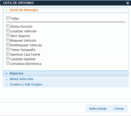 sobre el icono de Lista de Vehículos hay diferentes formas de seleccionar