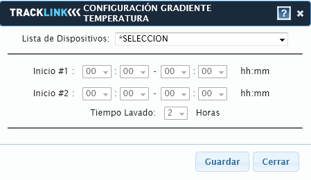 Se debe seleccionar el dispositivo una vez seleccionado se debe registrar las horas del inicio de ordeño #1, la hora inicial debe ser menor a la hora final, se debe registrar las horas del inicio de ordeño #2, la hora inicial debe ser menor a la hora final, se debe registrar el tiempo de lavado