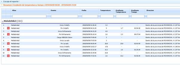 El reporte solo estar habilitado a los vehículos que tengan activados la opción gradiente en la base de datos. Al obtener el reporte se desplegara las siguientes columnas: