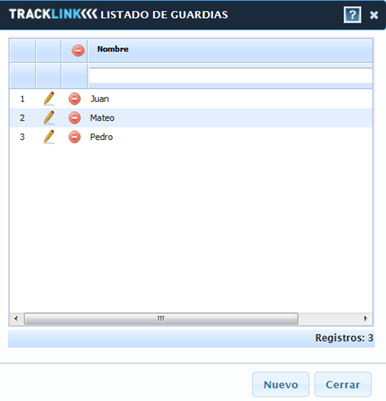 Esta opción permite añadir, modificar o eliminar los guardias para la obtención de la asignación desde la app para ello debemos seleccionar Configuración Visitas/ Rondas App en la barra de herramientas. Al dar click sobre la opción se desplegara la siguiente ventana.