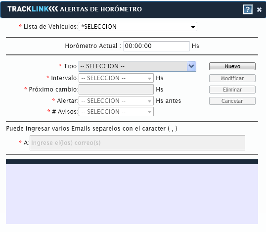 tener un registro de las alertas de su vehículo en base a horas, y la