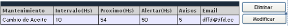 o más Correos a las cuales llegaran las alertas del mantenimiento. Cuando