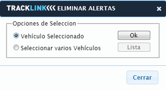 alertas del vehículo que se encuentra seleccionado en ese momento.