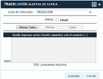 o Email.- email o emails separados con el carácter coma, para el envió de alertas.