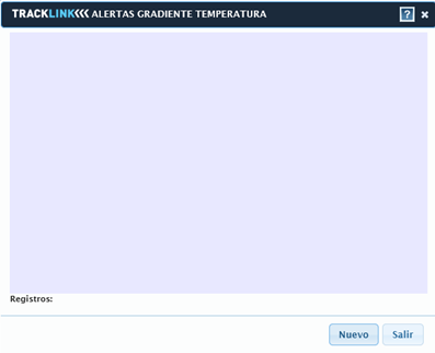 Esta opción permite añadir, modificar o eliminar los parámetros para las alertas de Gradiente de temperatura, para ello se debe seleccionar en la barra de herramientas la opción Alertas y el ítem Alertas Gradiente. Al dar click sobre la opción se desplegara la siguiente ventana.