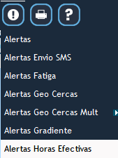 Para la configuración de las alertas de horas efectivas se debe seleccionar el ítem Alertas de Horas Efectivas en la barra de herramientas. Dicha opción solo se desplegara para los usuarios que tengan activada la opción horas efectivas.