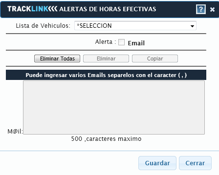 Email.- email o emails separados con el carácter coma, para él envió de alertas.