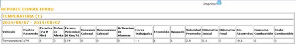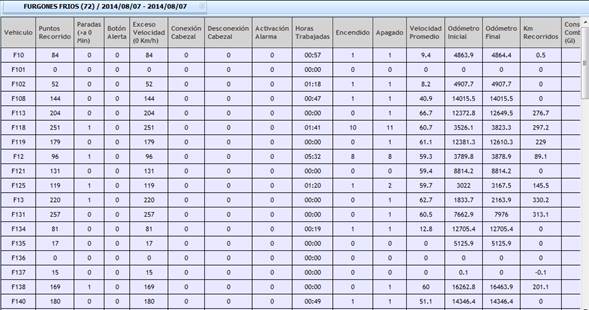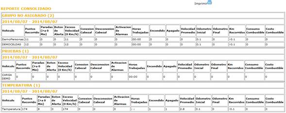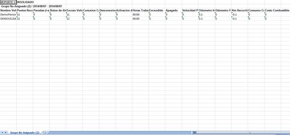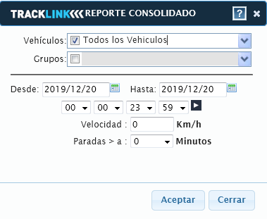 El Reporte Consolidado solo está habilitado para los vehículos con el sistema Control Total, sirve para obtener un total del número de puntos de los reportes como: Vehículo (alias), Recorrido, Paradas, Botón de Alerta, Exceso de Velocidad, Conexión de Cabezal, Desconexión de Cabezal, Activación de Alarma, Horas Trabajadas, Encendido, Apagado, Velocidad Promedio, Odómetro Inicial, Odómetro Final, kilómetros recorridos en una fecha determinada, Consumo Combustible y también nos despliega el Costo Combustible.