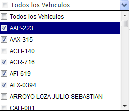 En este combo podemos seleccionar Todos los vehículos o vehículo por vehículo.