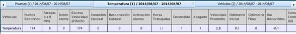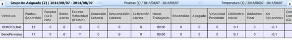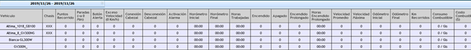 En el cual existen varios tabs en los que me indican el nombre del grupo la cantidad de vehículos y el rango de fechas del reporte.