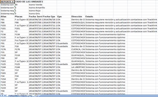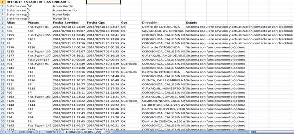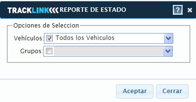 Una vez que ya tengan seleccionamos los vehículos damos click en Aceptar. y nos despliega el reporte de estado como podemos ver en la siguiente imagen.
