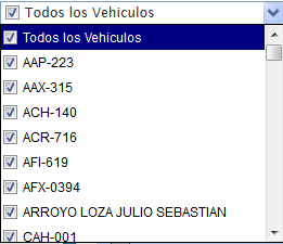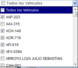 En donde tenemos la opción de Todos los Vehículos o puedo seleccionar uno a varios a la vez.