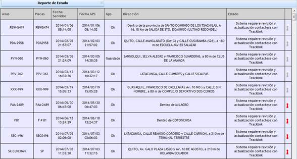 Sistema requiere revisión y actualización, contáctese con Tracklink |