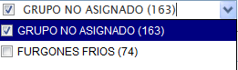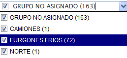 Al momento de desplegar el combo obtendremos todos los nombres de los grupos que existen con la cantidad de vehículos que tiene el grupo.