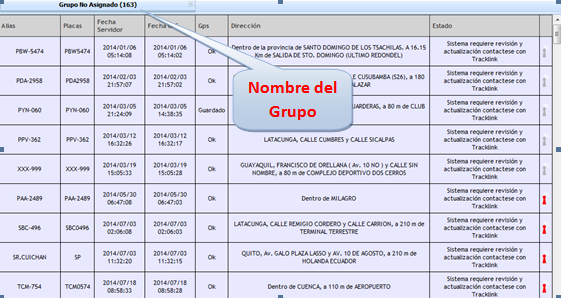 Para saber que vehículos son de cada grupo se aumentó una fila en la que indica el nombre del grupo y la cantidad de vehículos de ese grupo como podemos ver en la siguiente imagen.