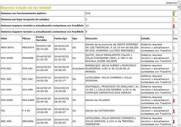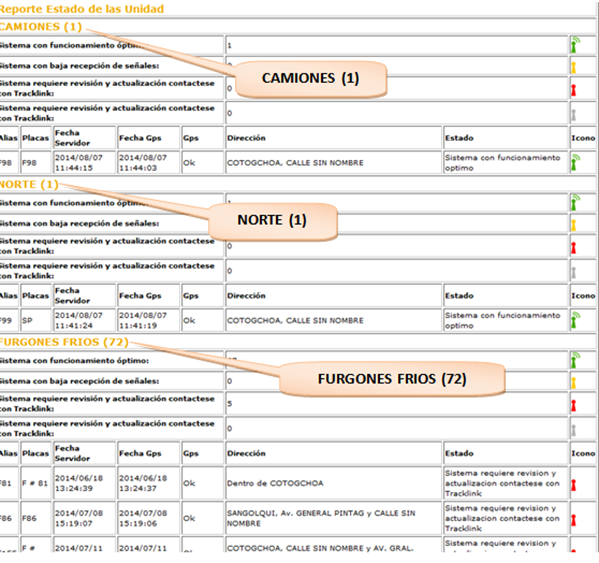 Nota: El sistema HEALTH CHECK perteneciente a (TRACKLINK), lo que hace es consultar cada hora la última información de todos las unidades (GPRS Y SMS) y todos los días a las 11 de la noche valida la información si son unidades GPRS y no reportaron en un día les envía una señal, si son