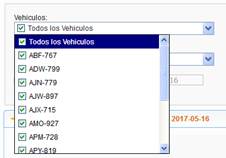 El usuario puede seleccionar uno o varios vehículos del combo de la lista para desplegar el reporte.