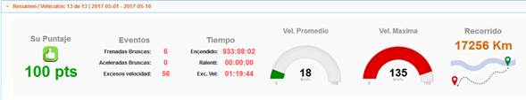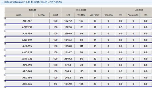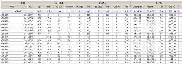 En el detalle de la información se desplegara las calificaciones diarias agrupadas por vehículos.