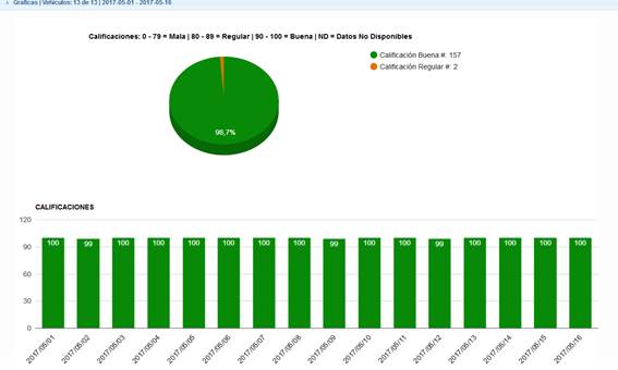 La grafica de barras se genera con la información de las calificaciones diarias de todos los vehículos seleccionados.