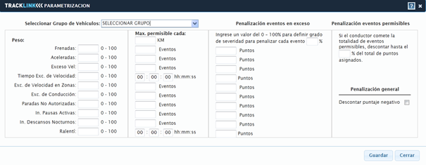 penalizar cada evento en exceso una vez ingresado se debe dar click dentro de