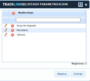 Paremetrización.- Para eliminar la configuración de los grupos se debe dar click en el