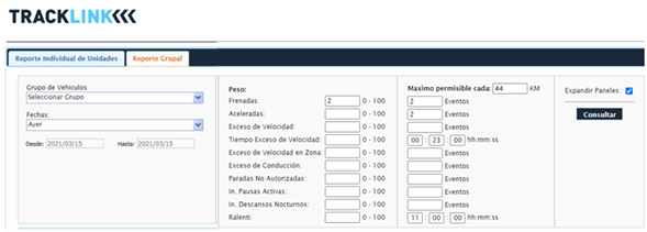 el nombre del grupo de vehículo, seleccionamos el rango de fechas y horas y