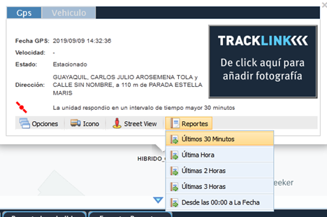Reportes (Últimos 30 minutos, Última Hora, Últimas 2 Horas, Últimas 3