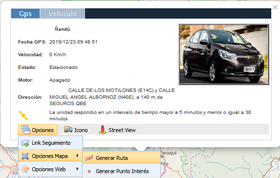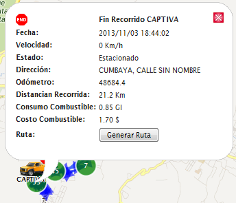 del vehículo y dar click sobre el icono se desplegara el POPUP en la parte