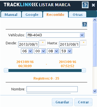 dirigirnos a Opciones Mapa Generar Ruta nos despliega la siguiente pantalla